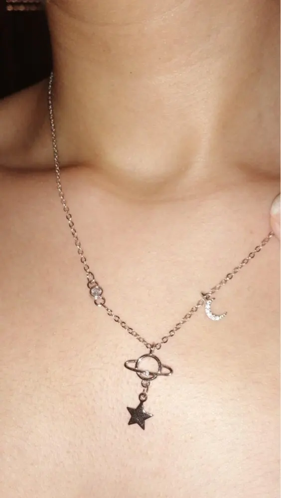 This adjustable silver necklace is composed of the lovely planets and moon in our galaxies. This is such a unique necklace. Style it with our Half Moon Starry Night bracelet to complete an astonishingly amazing look!